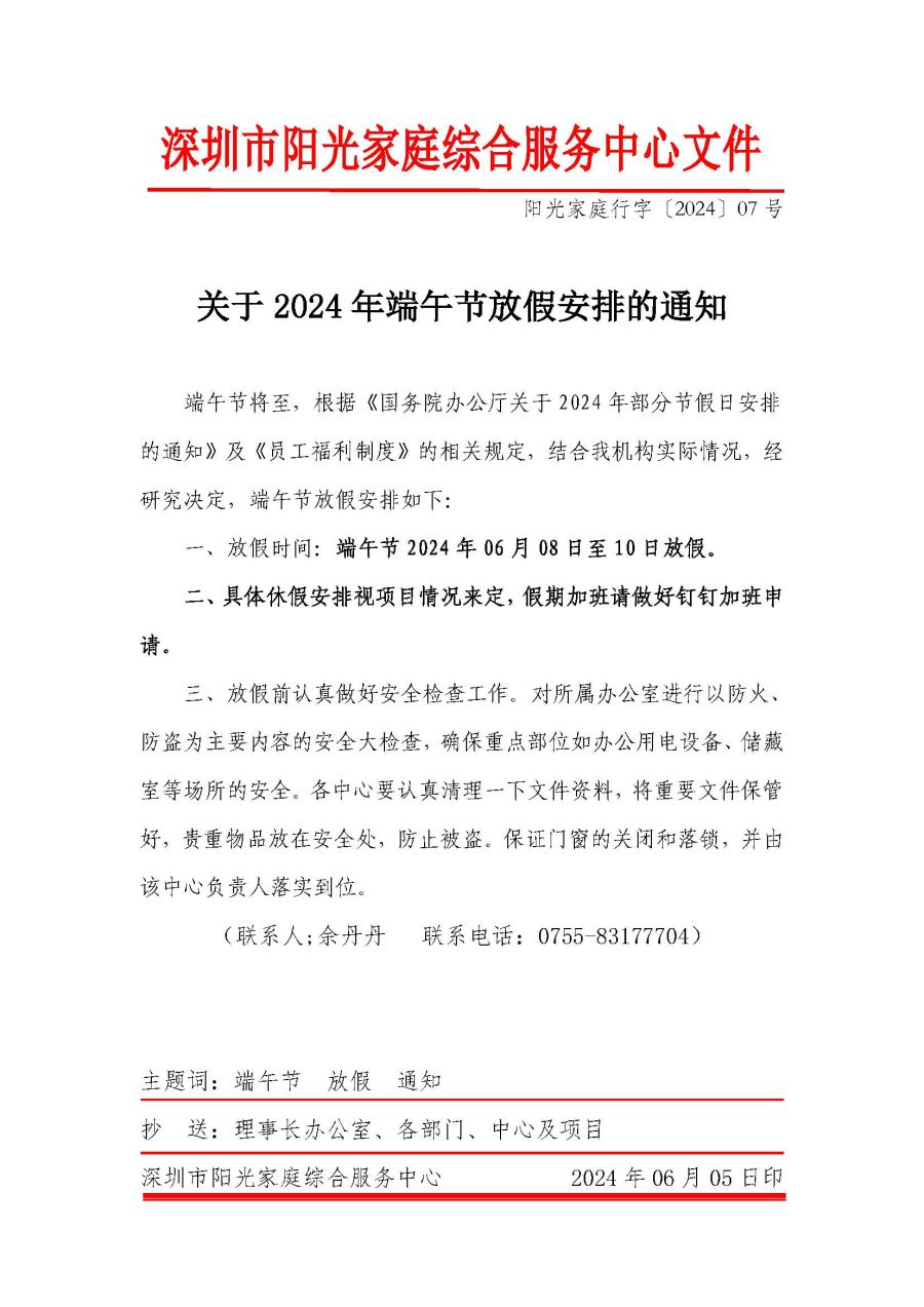 分类: 通知公告2024 年 6 月 5 日Related Posts阳光家庭人字[2025] 007号 关于阳光家庭2025年第二季度绩效考核结果公示的通知2025 年 7 月 25 日阳光家庭服字[2025]004号-关于2025年上半年服务总结资料收集通知2025 年 7 月 4 日阳光家庭服字[2025]003号-关于2025年第二期社会工作者上岗基础知识培训及考试通知2025 年 7 月 2 日阳光家庭行字[2025]005号 关于2025年端午节放假安排的通知2025 年 5 月 27 日阳光家庭人字[2025]004号-阳光家庭2024年度评优表彰结果公示2025 年 5 月 15 日阳光家庭服字[2025]002号-关于开展深圳市注册社会工作者2025年度续期注册的通知2025 年 5 月 7 日