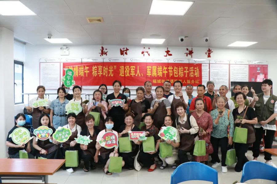 端午佳节将至,为积极传承中华传统文化,纪念延安双拥运动80周年,进一步营造拥军优属、拥政爱民的浓厚氛围,提升辖区退役军人幸福感。福城街道退役军人服务站组织开展“浓情端午·粽享时光”退役军人、军属端午节包粽子活动。此次活动吸引了30余名退役军人、军属参与。