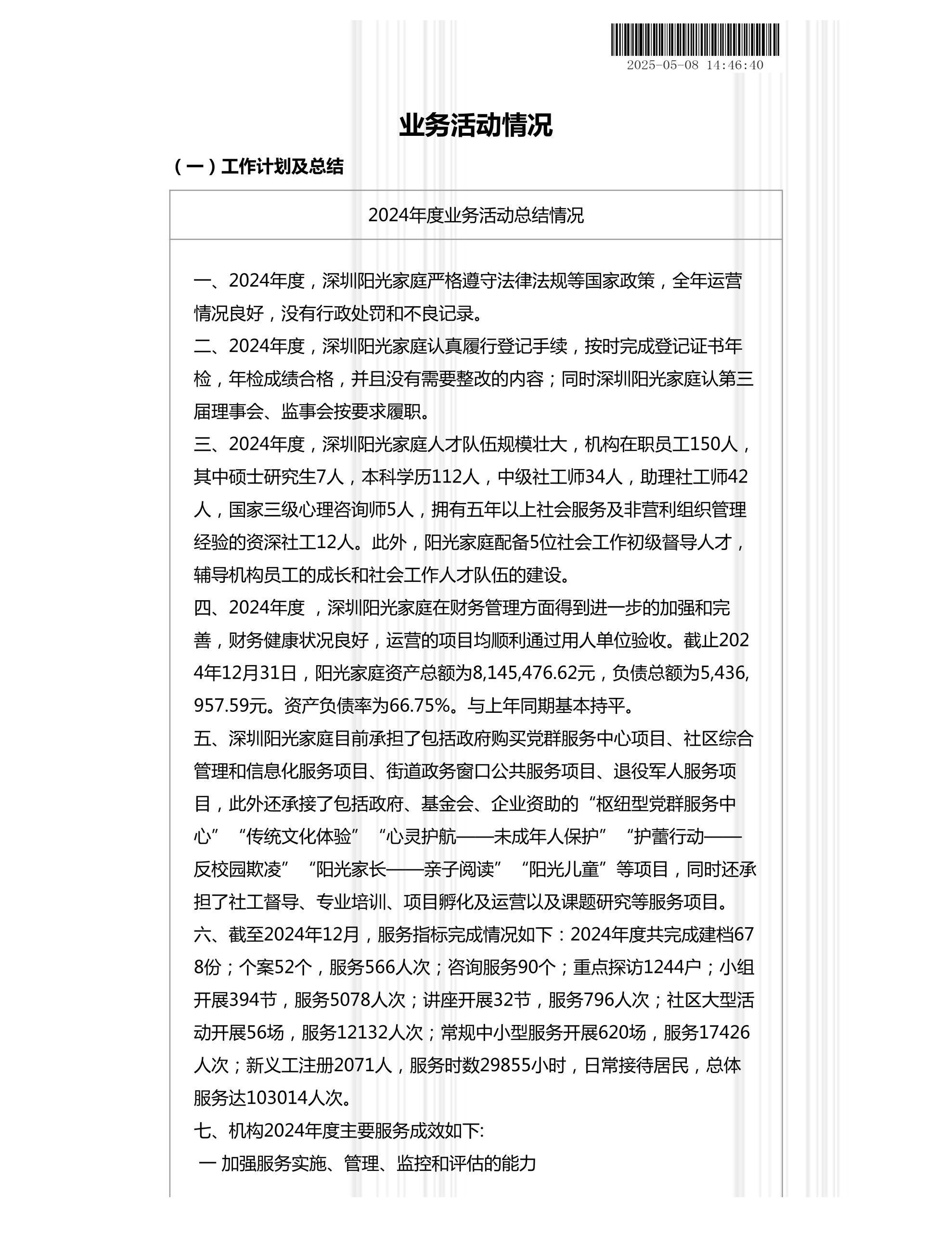 深圳市阳光家庭综合服务中心2024年度工作报告
