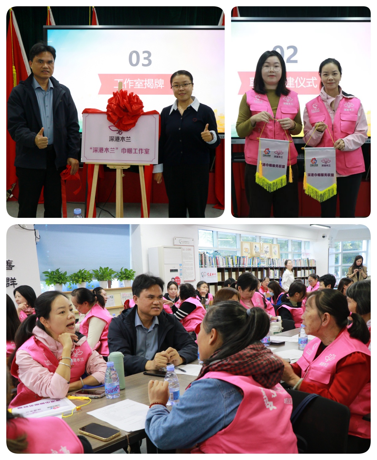 活动现场,深港巾帼志愿者代表共同签署并宣读《深港巾帼服务联盟契约》,手持定制交流旗帜合影留念,用庄严承诺凝聚起“奉献、友爱、互助、进步”的志愿共识。随后,盐田区妇联与中英街社区党委联合为“深港木兰”巾帼工作室揭牌,标志着深港巾帼志愿服务有了固定的交流阵地与赋能平台,将为两地志愿者提供资源对接、技能培训、项目孵化等全方位支持。