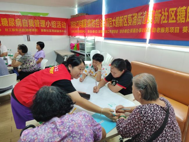 为提高社区糖尿病患者自我管理意识,提升糖尿病患者自我管理能力,6月26日下午,由深圳市慢性病防治中心主办,深圳市社会工作者协会承办,葵新社区党群服务中心、葵涌办事处社区助老项目协办的深圳市社工参与糖尿病防控试点项目在葵新社区金南分站点开展“解糖忧,促健康”– 葵新社区糖尿病自我管理小组第一节活动,15名社区居民参加了活动。