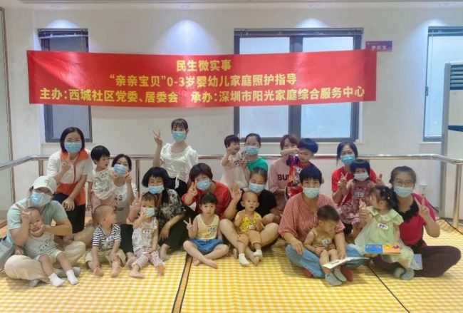 “亲亲宝贝”0-3岁婴幼儿家庭照护指导项目是2022年西城社区民生微实事项目之一,由社工、育婴师、营养师、早教导师等组成专业团队,为社区0-3岁婴幼儿及其家庭进行照护指导、膳食营养搭配、早教启发、亲子互动等,培养家长的早期教育、亲子观念、科学喂育知识与技能,为儿童营造充满关爱、健康发展的成长环境。