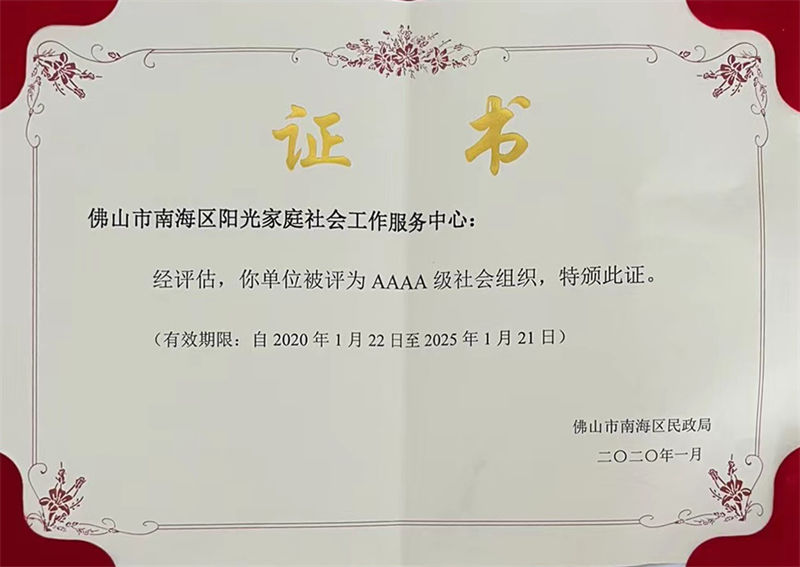 | 2020年1月 | 佛山市南海区社会组织等级评估4A机构 | 佛山市南海区民政局 | 区级 |