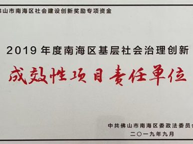 | 2019年9月 | 2019年南海区基层社会治理创新成效性项目责任单位 | 中共佛山市南海区委政法委员会 | 区级 |