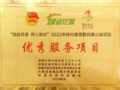 | 2023年8月 | “益起共享同心陈村”2022年陈村镇党群共建公益项目优秀服务项目 | 顺德区陈村镇公共服务办公室 | 镇街级 |