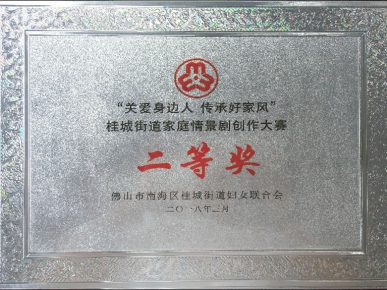 | 2018年3月 | “关爱身边人传承好家风”桂城街道家庭情景剧创作大赛二等奖(尖东) | 佛山市南海区桂城街道妇女联合会 | 镇街级 |
