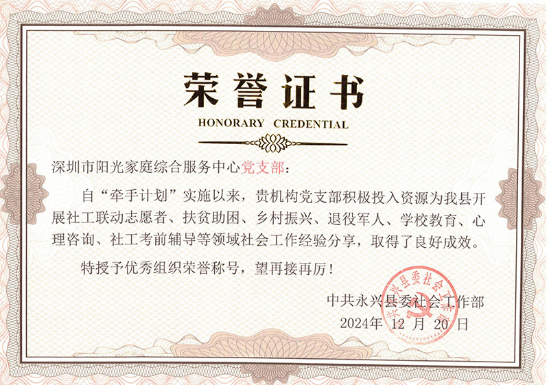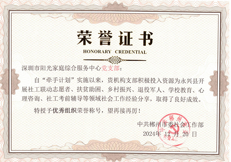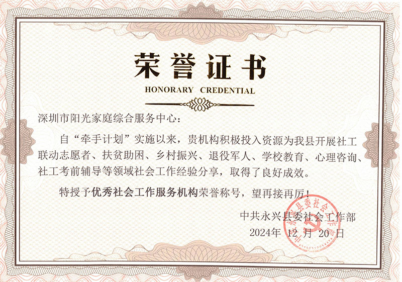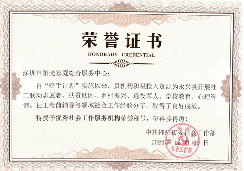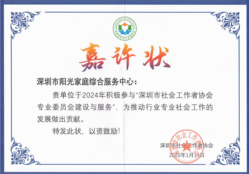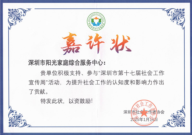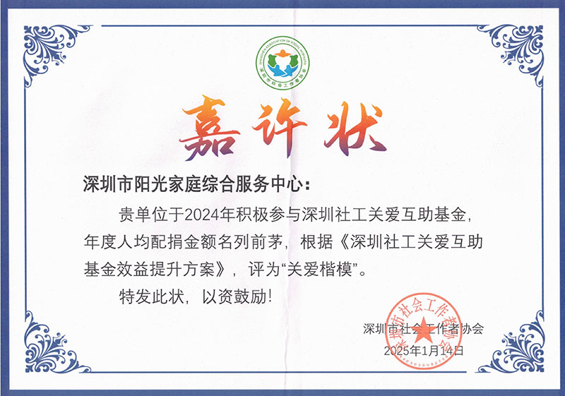 民政部社会工作服务示范单位·全国百强社会工作服务机构,深圳市阳光家庭综合服务中心