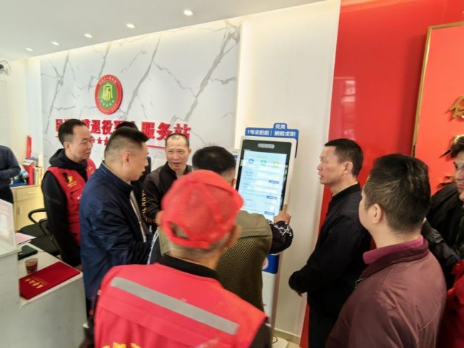 2025 年 1 月 9 日,龙华区退役军人事务局副局长向胜、民治街道办事处副主任李少庆莅临民治街道退役军人服务站,共同为退役军人AI智能求职机举行揭幕仪式,这标志着深圳市退役军人系统首台求职机正式入驻并启用,公共服务办(劳动)主要负责人、退役军人事务岗和红星志愿者参加了揭幕仪式。