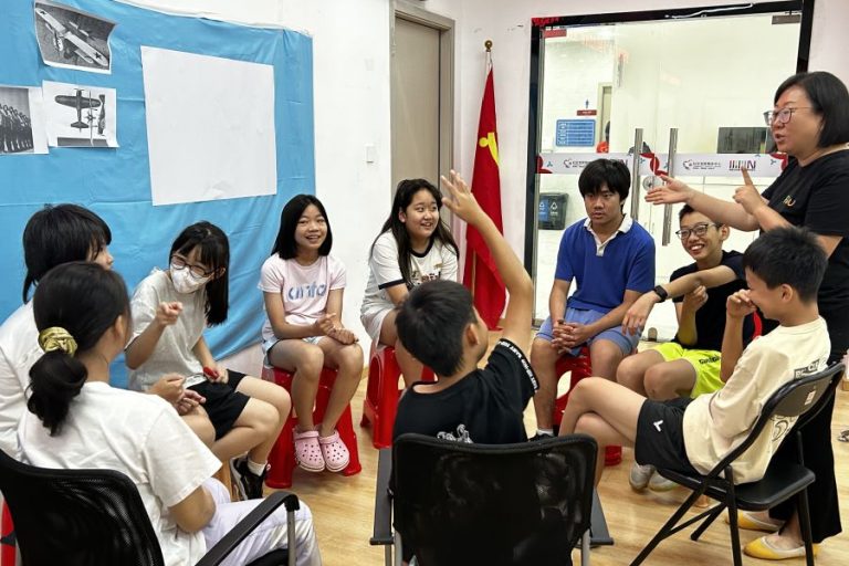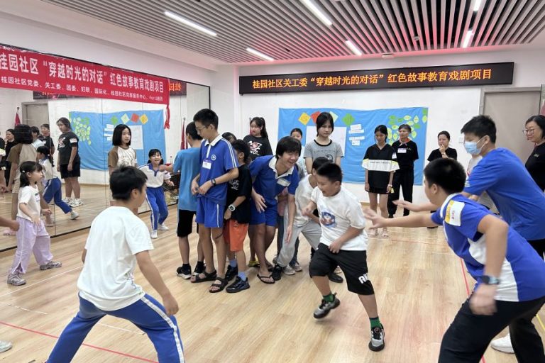 8月20日,在桂园社区党委、关工委、妇联的支持下,桂园社区“穿越时光的对话”红色故事教育戏剧活动第二节圆满落幕,社工与3位FOR U剧团的老师携手24位青少年,用一整天的时间,共同学习并演绎了一段段感人至深的故事场景–“空军第五大队”的抗日光辉战绩,让社区的青少年们感受到了历史的厚重与爱国精神的传承。